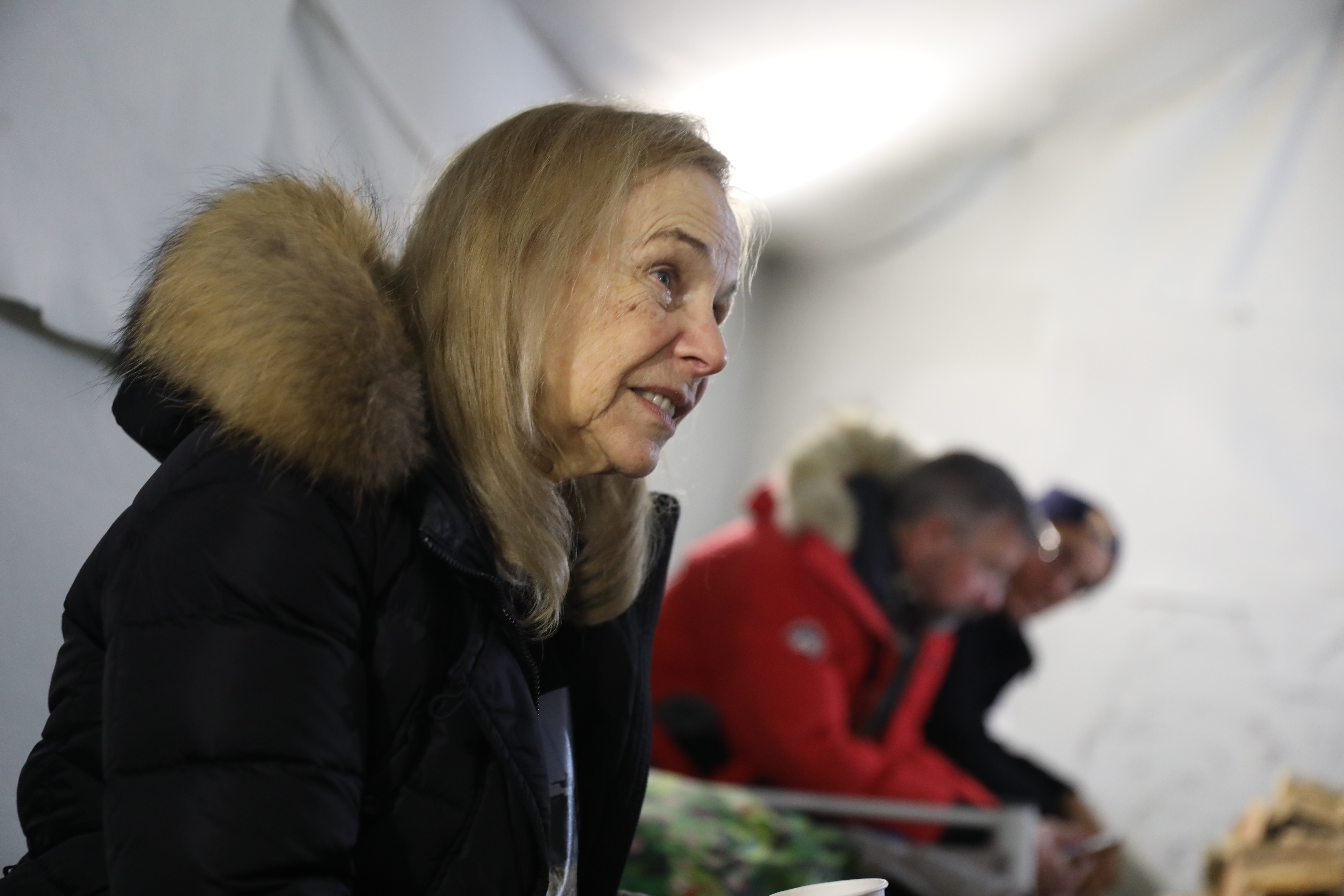 У Гостомелі Мітці Пердью разом з поліцейськими та громадянами, які знаходилися в палатці, випила гарячого чаю з печивом. Також бізнесвумен оглянула умови, які були створені працівниками поліції, поспілкувалася з місцевими жителями та правоохоронцями.