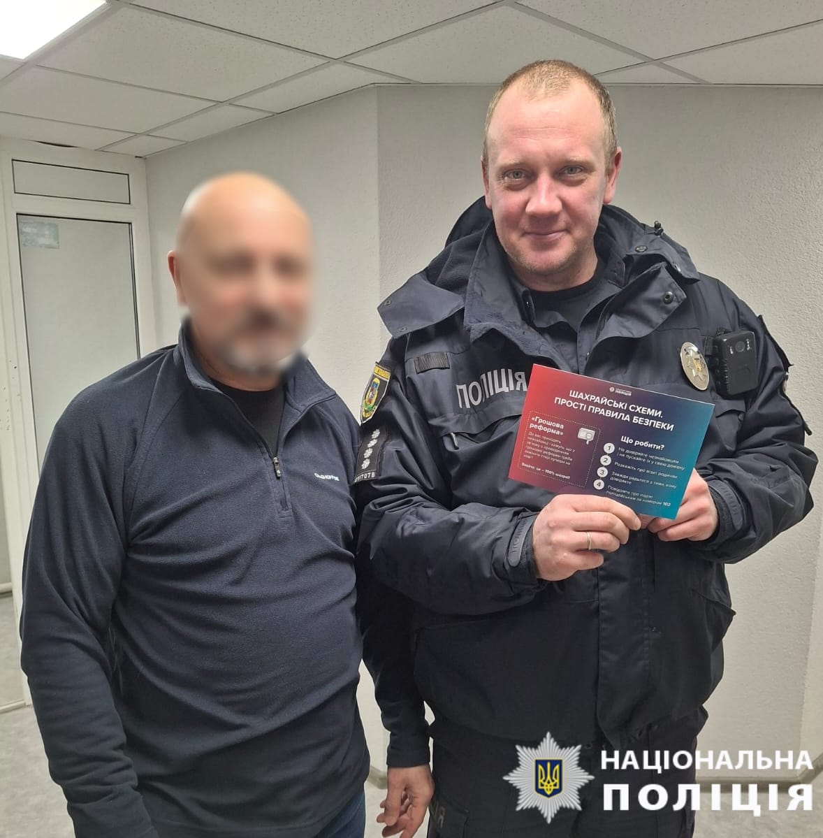 Під час бесід громадянам роздали інформаційні пам’ятки, де детально описані найпоширеніші види шахрайств та алгоритм дій у разі виявлення правопорушень.