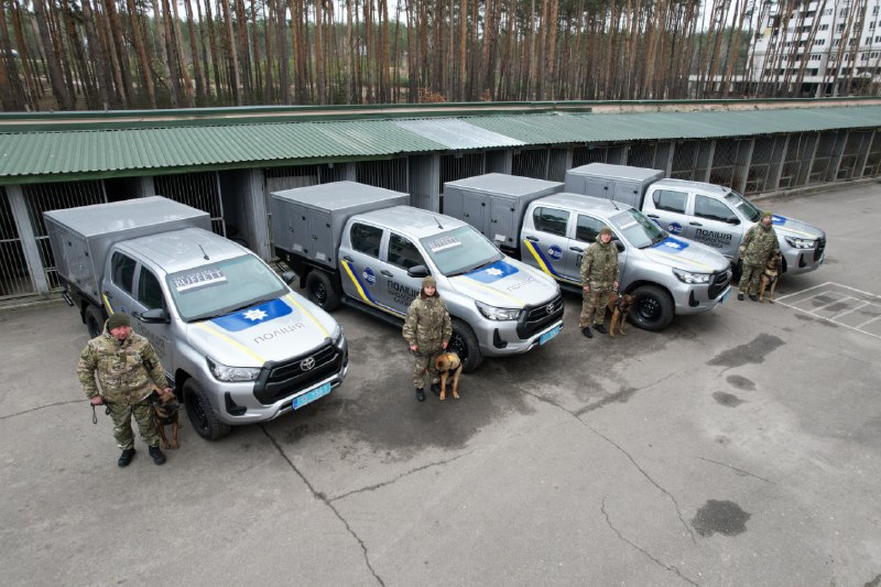 Днями поліцейські отримали від фундації Howard G. Buffett Foundation чотири унікальні кінологічні спецмобілі Toyota Hilux для перевезення службових собак.