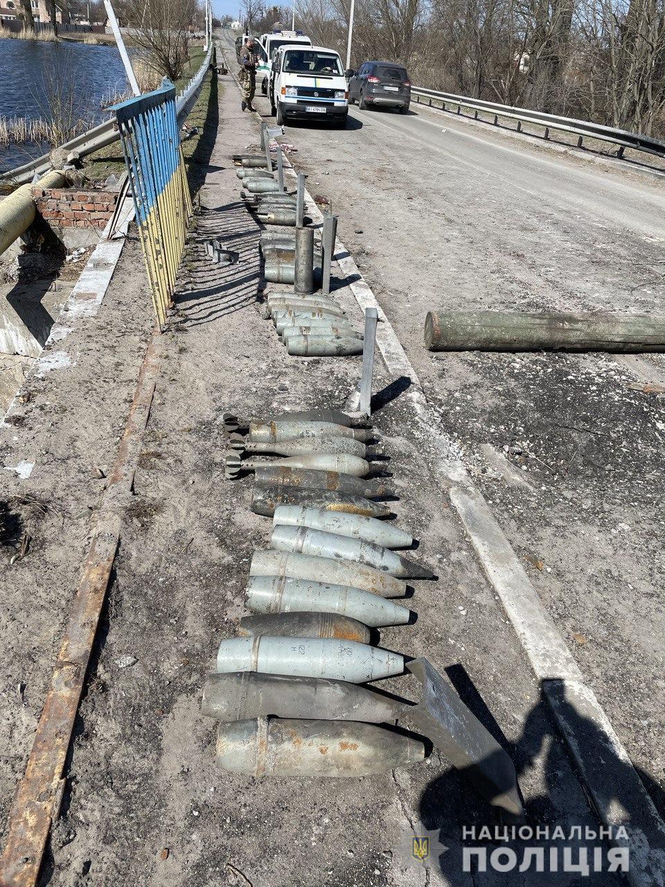 Так, під час відпрацювання села Андріївка у Макарівській громаді правоохоронці перевірили 317 будинків по вулицях Слобода, Першотравнева та Меля. У результаті виявили близько двох десятків ящиків з ворожими протитанковими мінами та нерозірвані боєприпаси на території 15 господарств.