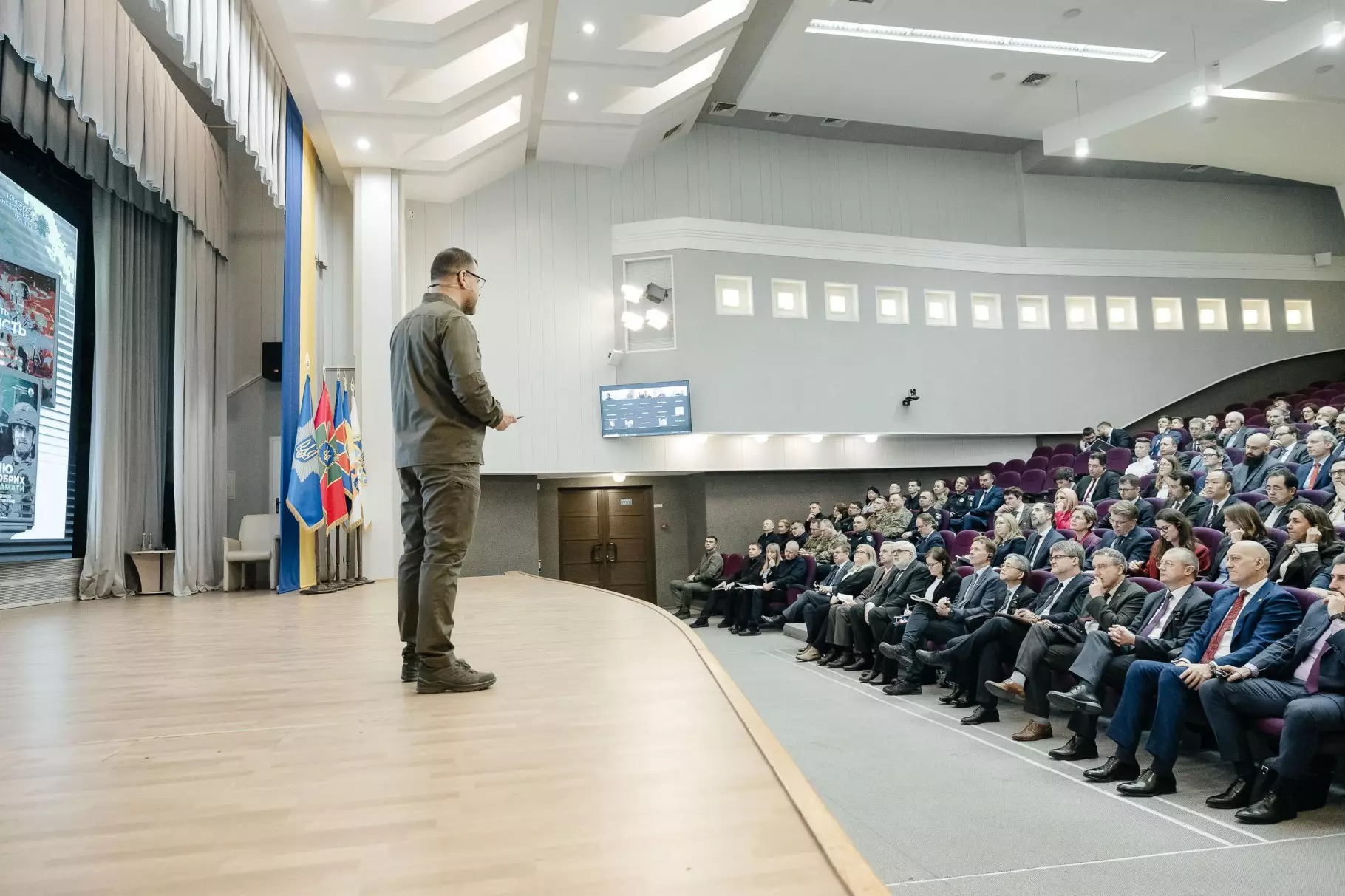До гостей звернувся Міністр внутрішніх справ України Ігор Клименко, який детальніше розповів присутнім про розбудову нової архітектури безпеки України за допомогою органів системи МВС.