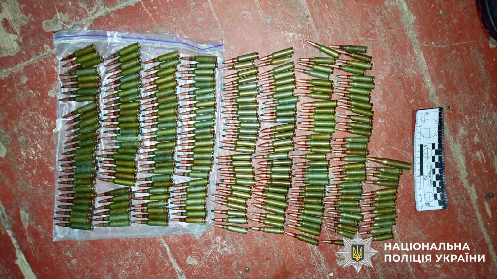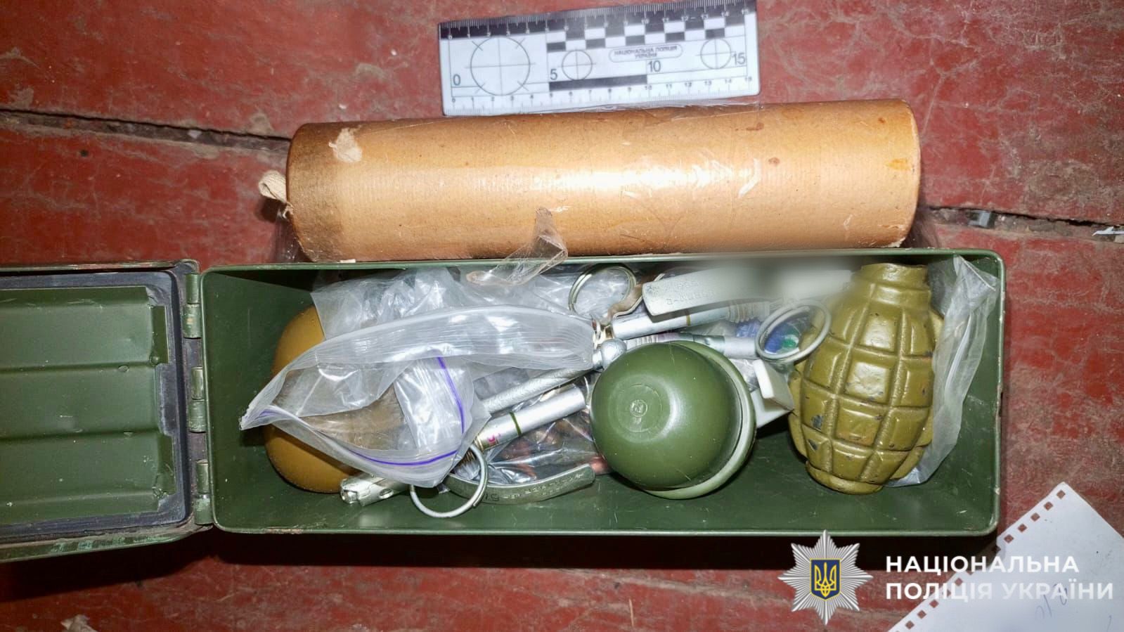 Під час обшуку поліцейські виявили дві ручні димові гранати РДГ-2, ручну димову гранату РДГ-55, корпус ручних гранат РГД-5 та Ф1, підривачі до ручних гранат УЗРГМ-2 і УЗРГМ-7 та 230 набоїв калібру 5,45 мм. Спеціалісти-криміналісти зафіксували та вилучили вказані вибухонебезпечні предмети.