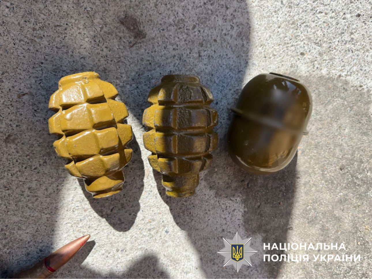 Під час обшуку, працівники поліції виявили та вилучили уніфікований запал дистанційної дії УЗРГМ та корпус наступальної осколкової ручної гранати РГД-5, 54 гвинтівкових патрона калібру 5,6 мм, кулеметні патрони калібру 12,7 мм, споряджені запалюючою кулею миттєвої дії, а також два перероблених саморобним способом пістолета.