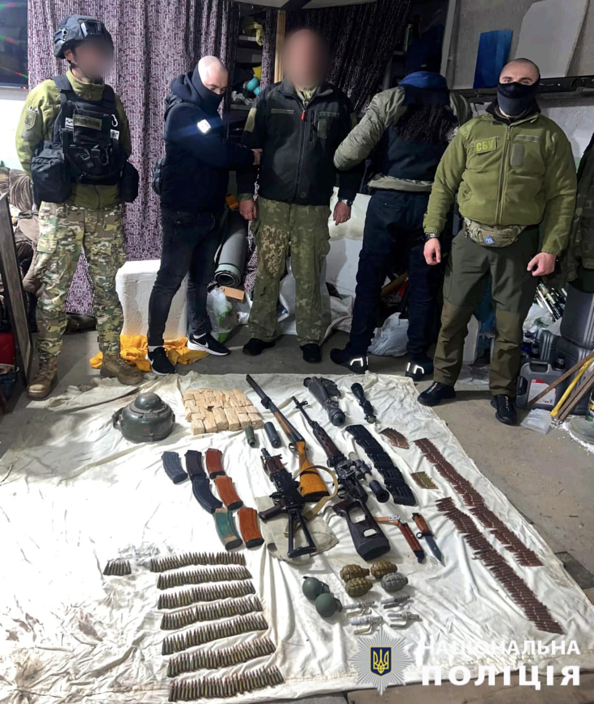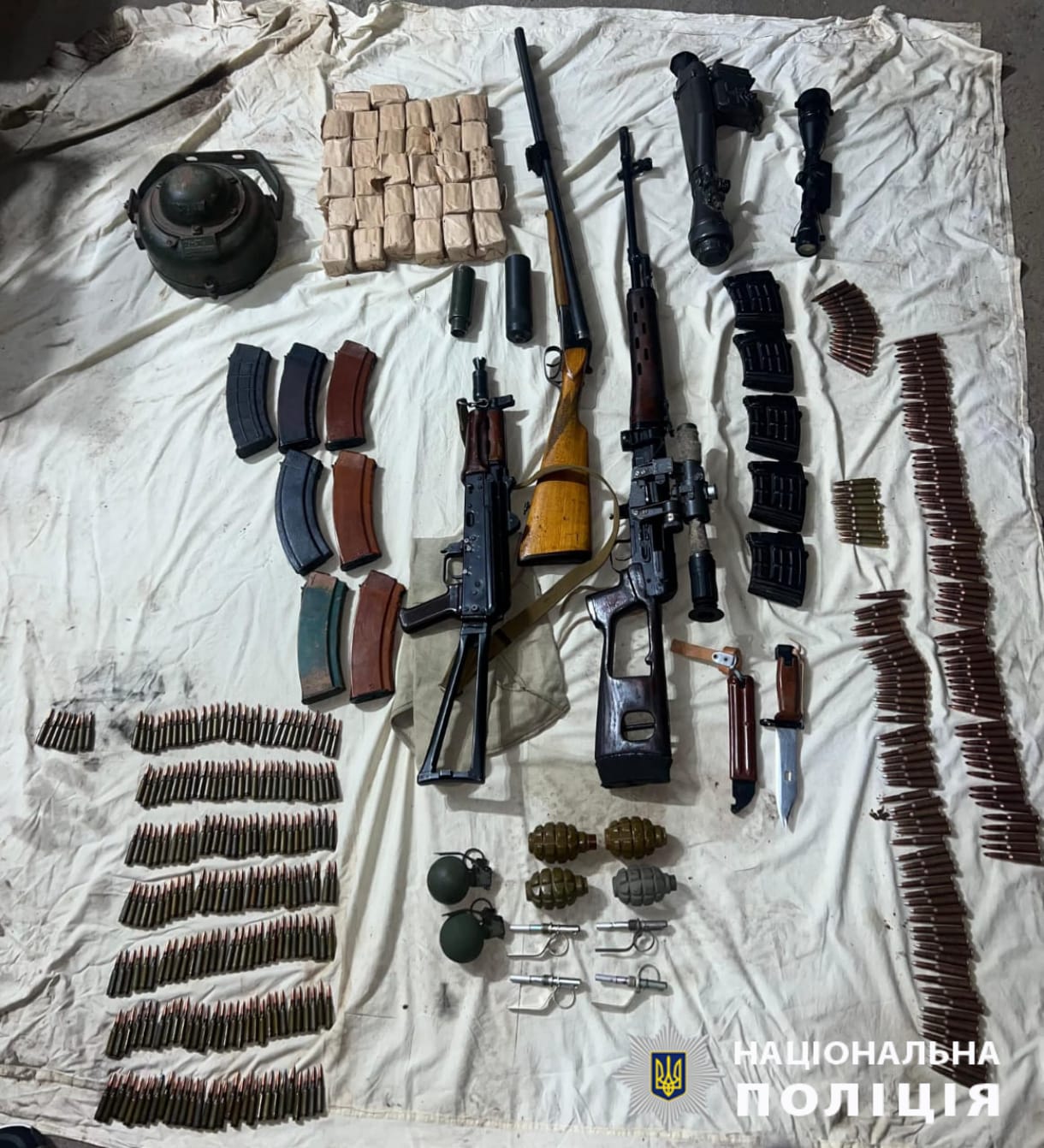 Під час обшуку, працівники поліції виявили та вилучили чотири корпуси гранат Ф-1, дві уламкові гранати типу М-67 з підривачами, автомат АКС-74У та сім магазинів до нього, багнет, снайперську гвинтівку з п'ятьма магазинами, нічний стрілецький та снайперський оптичні приціли, два глушники, а також 1147 набоїв калібру 5,45 мм і 144 набоїв калібру 7,62 мм.
