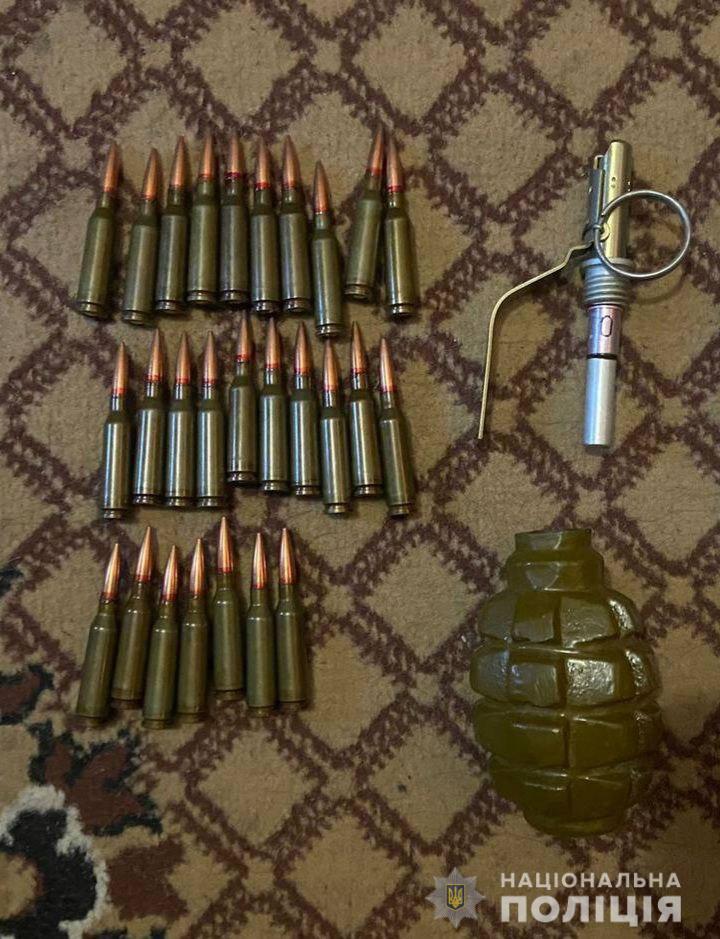 Так, правоохоронці Василькова під час відпрацювання вилучили у місцевого жителя гранату Ф-1 та 27 набоїв калібру 5,45 мм. В Миронівці після прибуття на виклик виявили у місцевого жителя незареєстрований автомат АКС-74У та 58 набоїв до нього.