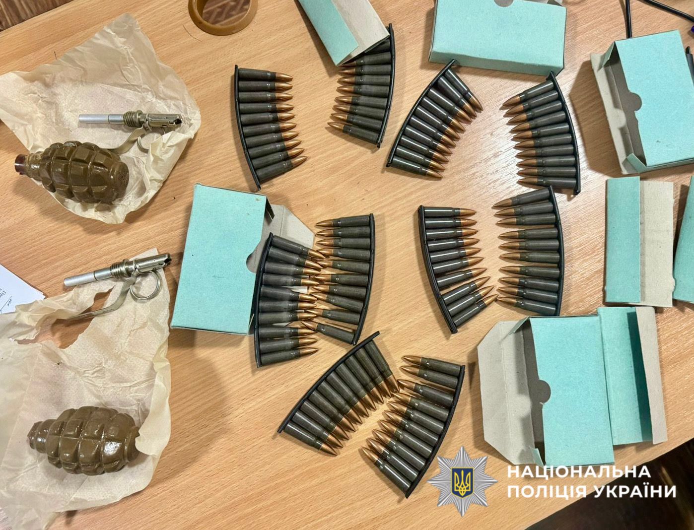Окрім того, під час санкціонованого обшуку в помешканні зловмисника правоохоронці також виявили та вилучили 100 патронів калібру 5,6 мм, гранату з підривачем УЗРГМ-2. Спеціалісти-криміналісти зафіксували вилучення заборонених предметів.